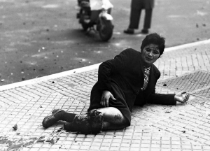 Las fotos del bombardeo son estremecedoras, pero hay una en particular. Una mujer acostada en la vereda mirando en su cuerpo lo que ya no está. A unos pasos, su pierna desgarrada.