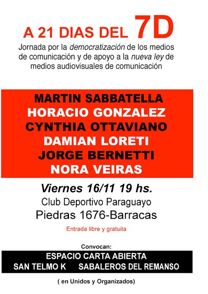 Alli estaré… El lugar queda, yendo por la calle Bolívar y llegando a la Av. Martín García (donde aquella se acaba, a una cuadra de Parque Lezama) del otro lado de la plazoleta que Macri tiene en obras. Sabaler@s del Remanso cumple 2 (dos) años … y vos kumpa … acompañándonos … pusiste lo tuyo para que así fuese … entonces … este Viernes 21/09 … tipo 22 hs te esperamos en…