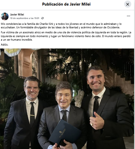 El asesinato de Charlie Kirk, uno de los principales influencers que ayudaron al triunfo de Donald Trump en las elecciones presidenciales de Estados Unidos, ha dado lugar a variadas interpretaciones. Montserrat Mestre ha publicado en su blog Revuelta Global la del politicólogo marxista italiano Alex Marsaglia, que ofrecemos a continuación. Contradice frontalmente lo proclamado tanto por Donald Trump (que responsabilizó a «la izquierda radical») como por su forofo Javier Milei: ambos atribuyeron el asesinato a una izquierda más difusa que polimorfa.
