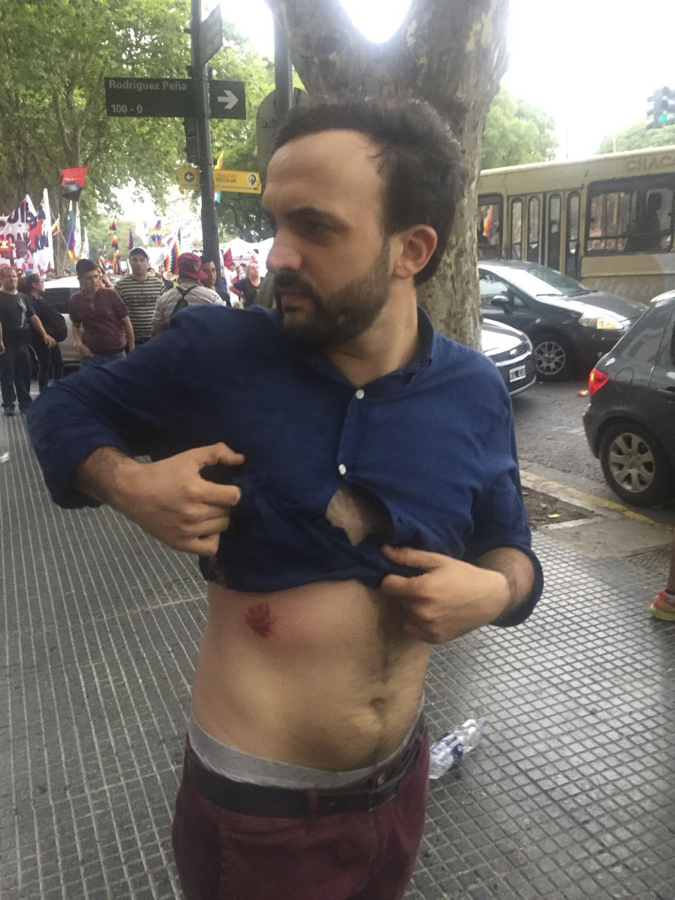 Fui testigo presencial, como muchos otros lo fueron, del momento en que Gendarmería desató la represión y la cacería sin que mediara ningún ataque de los manifestantes. Todo comenzó con el avance de un carro hidrante, un camión cisterna, motos y pelotones de efectivos fuertemente armados hacia las vallas localizadas sobre la Plaza de los Dos Congresos.
