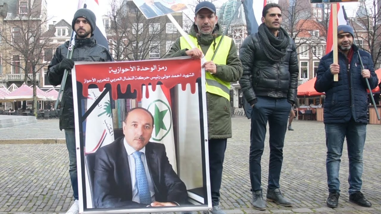 Junto con el CNRI, respaldado en ocasiones por Israel y por la Administración Trump, el otro gran enemigo del régimen de los ayatolás es el Movimiento de Lucha Árabe para la Liberación de Ahvaz, que reivindica la independencia de la provincia petrolera de Juzestán -donde vive buena parte de la minoría árabe de Irán-. En noviembre de 2017, el fundador de este movimiento, Ahmad Molla Nissi, de 52 años, fue también asesinado en la puerta de su casa en La Haya. “El conflicto entre Arabia Saudí e Irán se está extendiendo a Europa”, advirtió, tras su muerte, su hija en una declaración a la agencia Reuters. Aqui, compañeros del occiso se manifiestan en La Haya: