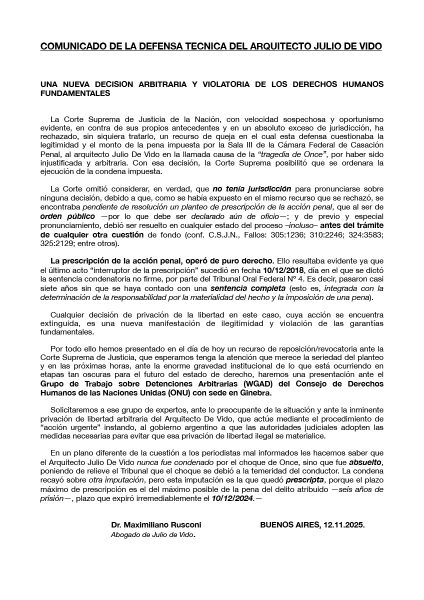 JULIO DE VIDO: Su injusta, arbitraria y vengativa prisión so pretexto de una causa prescripta nos pone en un brete