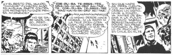 Diana no podía ser anónima a causa de su padre porque El Eternauta era ya una historieta de culto, y sabíamos que su autor era un compañerazo… para ratificarlo, él comenzó a publicar en muestro diario, Noticias, La guerra de los Antartes… (N. del E.: recomiendo también ver aquí) pero eso fue después, un mes antes de que yo comenzara a hacer la colimba en La Tablada.