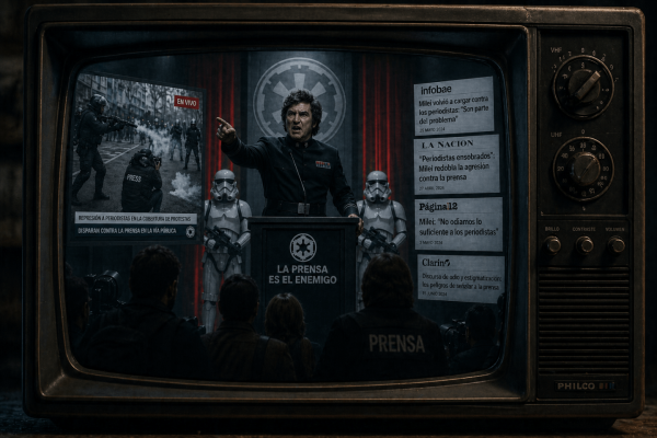 En este contexto, y a pesar de mi tirria por FOPEA y por ADEPA, es altamente recomendable leer y difundir el meduloso y prolijo trabajo de Omar Zanarini que lleva por tíitulo Ataques de Milei a la prensa: del discurso de odio a la violencia política y tiene como bajada «El rol de la arquitectura cognitiva y el encuadre presidencial en la construcción del periodista-enemigo».