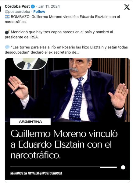 NARCOTRÁFICO. Guillermo Moreno señaló como a uno de los lavadores a Eduardo Elzstain /2. Acerca del denunciante
