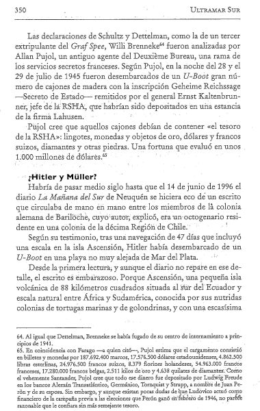 Basti siguió investigando y no sólo sostiene que Hitler vino en un U-Boot (lo que a mi me parece muy difícil, aunque parezca claro que los submarinos que arribaron a nuestras costas tenían la misión de preparar su llegada) y vivió largos años en la Patagonia argentinas, sino que ha publicado una serie de libros en los que fundamenta, con abundancia de indicios y evidencias, la presencia de Hitler, no sólo en Argentina  sino también en Chile, Paraguay y Colombia.